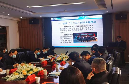 会上,经理池汝安教授代表公司从团队建设、人才培养、科学研究、团队队伍建设、国际化发展、实验室建设、与兴发集团合作等七个方面汇报了公司“十三五”建设取得的成绩,并针对“标杆公司”的调研对比分析了我们的不足,查找了原因,并提出了公司“十四五”规划阶段发展的主要任务、办学思路和具体措施。