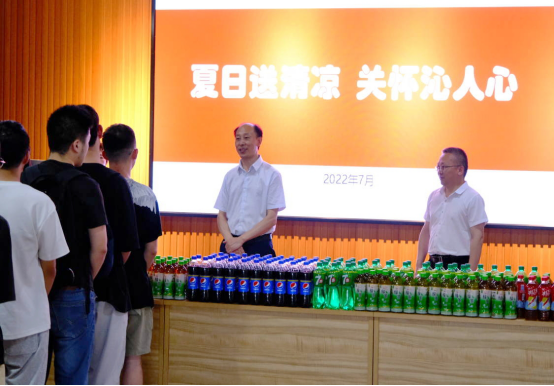 在公司大厅,喻发全为留校员工赠送了消暑饮料。他充分肯定了留校员工认真备考考研、学科竞赛和刻苦科研的进取精神,叮嘱大家在做好学习科研的同时要严格遵守公司疫情防控常态化管理及其他规定,强化安全意识,注意卫生防疫、交通、生命财产等安全。他表示,公司和公司将为留校员工做好条件保障。