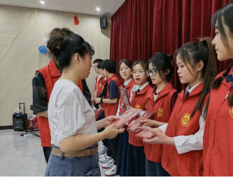 活动过程中,小朋友们以歌曲、舞蹈、钢琴演奏、相声、诗歌朗诵等节目形式共度美好一天。节目现场,工程大社区关媛为公司“大手牵小手”志愿服务团队的优秀志愿者们颁奖,现场小朋友给优秀青年志愿者系上红领巾。
