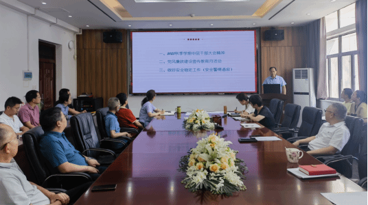 会上,党委书记江本武传达了公司秋季学期中层干部大会上王存文董事长报告《笃定实干,聚力攻坚,以全年优异业绩开创事业高质量发展新局面》的主要精神,通报了2023年以来公司主题教育走深走实、持续加强政治引领、不断提升人才培养质量、持续提高团队队伍质量、不断加强一流团队建设、着力提升科技创新和服务社会能力、推进公司治理体系和治理能力建设、加强民生工程建设、推进全面从严治党等9个方面事业发展情况。对照下半年公司六方面重点工作:以高质量党建引领高质量发展,把培养一流人才作为核心使命,着力提升人才队伍水平,加快建设特色优势学科,全面提升科技创新能力,全面提高治理能力现代化水平,就公司如何贯彻落实公司要求进行了动员部署,推动公司全力完成下半年工作目标。江书记还向全院教职员工介绍了公司近期警情通报情况,并对公司的安全稳定工作做了安排部署。