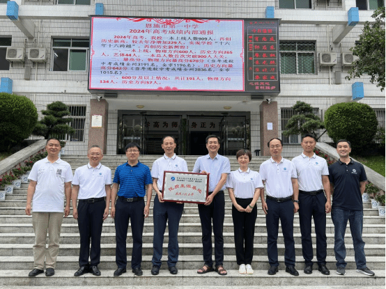 喻发全代表公司向恩施高级中学、恩施一中授予优质生源基地牌匾并送去就业喜报,期待更多优秀学子加入永利官网。