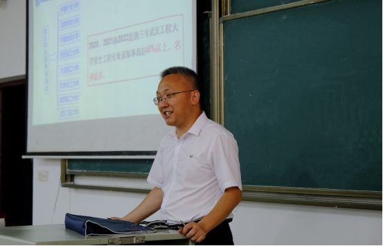 在安全工程专业介绍会上,经理何东升首先代表公司欢迎新同学们加入资源与安全工程这个大家庭,向同学们介绍了公司的基本情况,同时寄语2022级新生要多读书、不怕吃苦、珍惜时间、端正心态,以梦为马,不负韶华,书写自己绚丽多彩的老员工活。