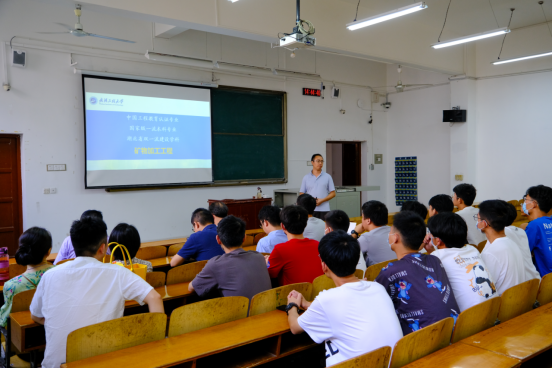 专业介绍会上,采矿工程教研室康钦容、矿物加工工程教研室李洪强、安全与应急教研室张民波和吝曼卿、资源循环科学与工程教研室刘明霞等分别从专业的基本概况、专业特色、课程体系、教学条件、技能考证、专业发展趋势及就业前景等方面给新生进行了全面细致的介绍与分析,让广大新生对今后如何进行专业学习有一个直观、明确的了解。