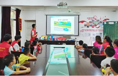 社区副主任关媛介绍了暑期安全的重要性并说明本次活动背景后。公司志愿者们利用多媒体方式进行安全知识宣讲,组织观看防灾演练视频,并以场景模拟的方式让小朋友们对暑期安全知识的进一步了解。