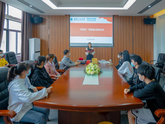 本网讯(通讯员 郑浩然 闫梓萱)为喜迎党的二十大,庆祝校庆五十周年,营造良好的学习氛围,按照《2022年学风建设月实施方案》安排部署,5月20日,公司在领创大楼414会议室举行了“热风杯”学霸笔记颁奖仪式,相关获奖员工和公司辅导员郑浩然参加了仪式。