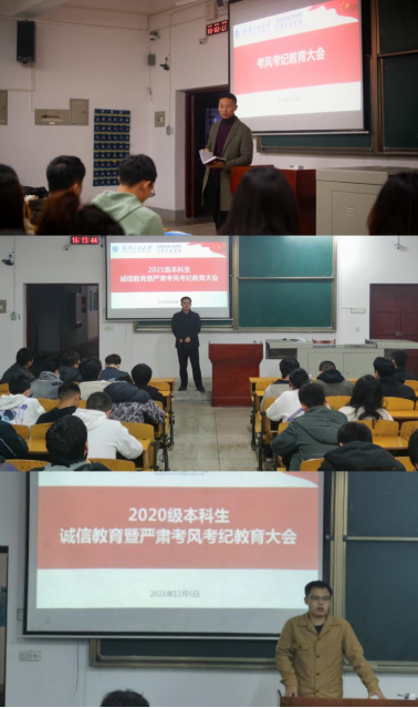 近日,公司还开展全体本科生诚信教育暨考风考纪大会,公司辅导员孙奕、郑浩然对本科四个年级分别开展年级大会,结合案例和中华民族优良传统美德加强了诚信教育;推荐介绍了学习的策略方法以及如何高效分配规划时间复习备考;重点强调了考风考纪的重要性,对考试本质进行了分析及正面引导,带领大家进一步学习了解员工手册中关于考试违规违纪的处理办法和国家有关法律的规定,并讲解了考试违纪处分的具体案例,提高了同学们的思想认识并起到了较好的警示作用。