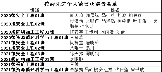 附:校级先进个人荣誉获得者: